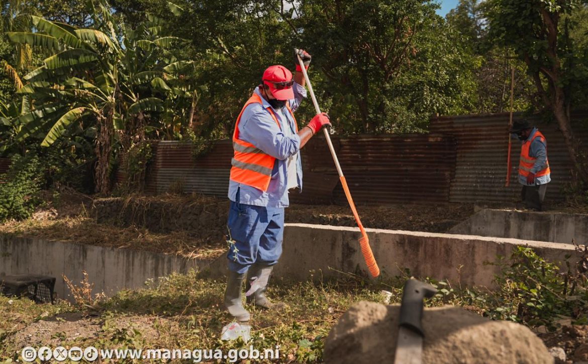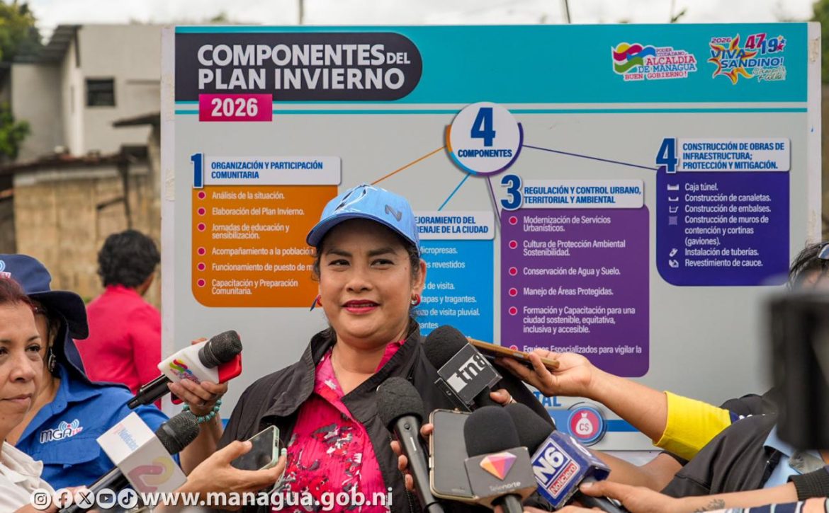 La Alcaldía de Managua inició todos los trabajos y medidas que implica el Plan Invierno 2026, diseñado en 4 componentes o líneas de trabajo para garantizar a las familias capitalinas un invierno seguro, esa es la prioridad, así lo informó la alcaldesa Reyna Rueda Alvarado, durante un recorrido en el barrio Memorial Sandino ubicado en el Distrito I, donde la municipalidad ejecuta la segunda etapa de un proyecto de drenaje pluvial, con el revestimiento de casi 90 metros lineales de cauce con concreto hidráulico.