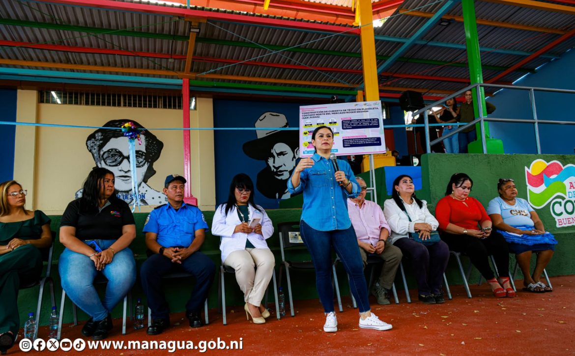 A 56 años de la Gesta Heroica de Las Mujeres de El Cuá, la comuna capitalina entregó a los comerciantes del mercado Roger Deshón ubicado en el barrio San Judas del distrito III, la construcción de una cubierta de techo en la plazoleta, en el costado norte de este centro de compras.