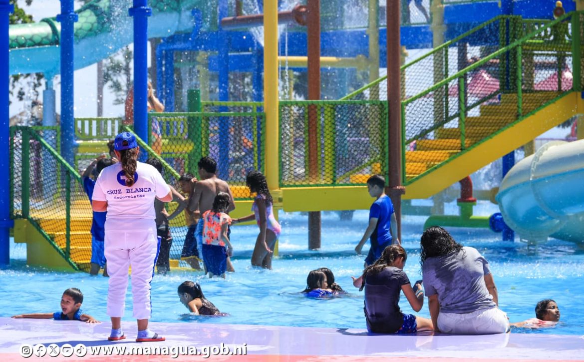 Desde horas muy tempranas en el Domingo de Ramos, familias provenientes de distintos puntos de la capital se dieron cita en las renovadas instalaciones del Parque Acuático, ubicado en el Paseo Xolotlán, donde la Alcaldía de Managua dio inicio a las actividades de la temporada de verano.