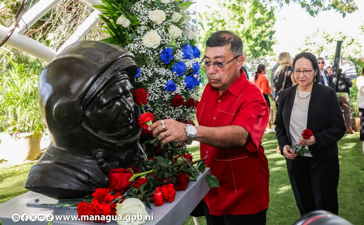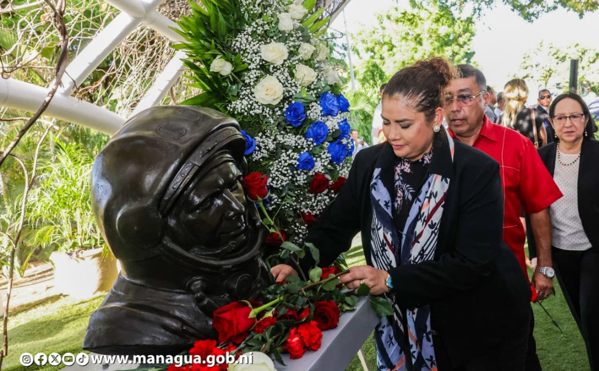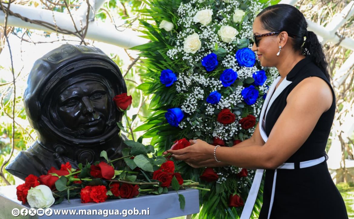 La delegación del Gobierno de Reconciliación y Unidad Nacional encabezada por el compañero Laureano Ortega Murillo, Asesor para Inversiones, Comercio, y Cooperación Internacional de la Presidencia de la República, el Canciller Denis Moncada, la Alcaldesa Reyna Rueda Alvarado, el Vicealcalde Enrique Armas Rosales, funcionarios de gobierno junto a representantes de la Embajada de la Federación Rusa, celebraron la gesta del héroe ruso que abrió el camino a la exploración del espacio.