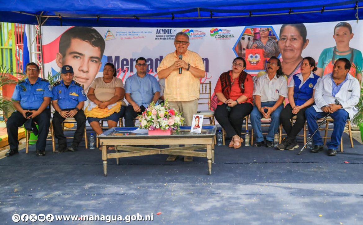 Durante el acto de celebración la compañera Jennifer Porras López, secretaria del Concejo de Managua, manifestó que los mercados capitalinos se han transformado progresivamente en infraestructuras más dignas, garantizando mejores condiciones para comerciantes y visitantes.